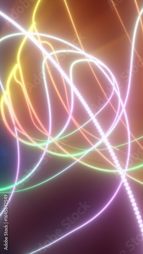 Abstract composition of vibrant, glowing light trails in motion against a dark background