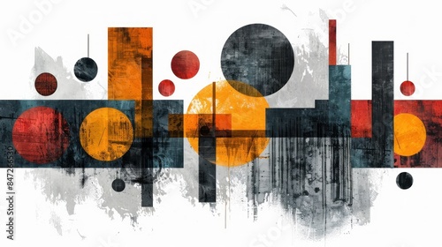 Abstract Composition with Geometric Shapes and Grunge Texture