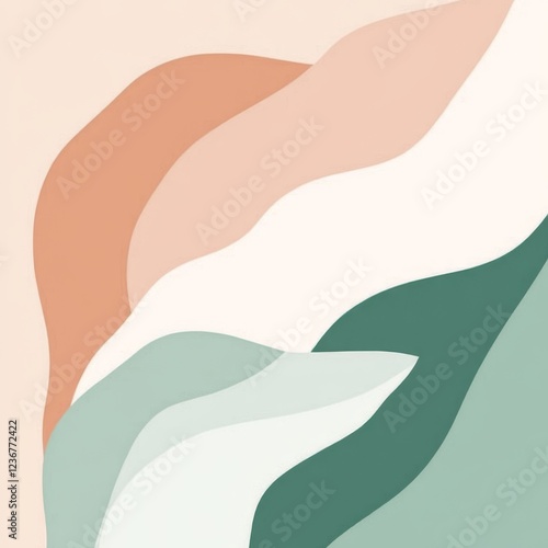 Abstract Composition with Peach, Green, and White Organic Shapes
