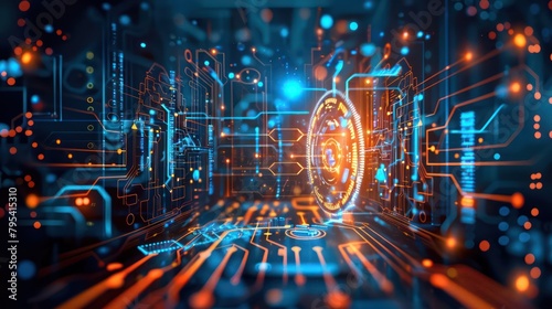 Abstract Computer Screen With Glowing Lights