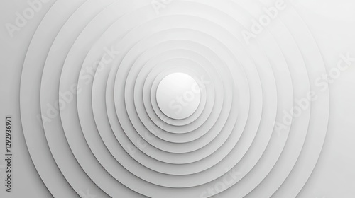 Abstract concentric circles design, layered in shades of white, creating a radial pattern, with a central highlight.