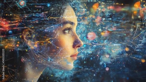 Abstract conceptualization of digital thoughts and connection through neural networks