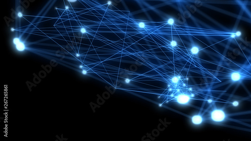 Abstract connection and communication with line dots on blue background. Communication and network concept.