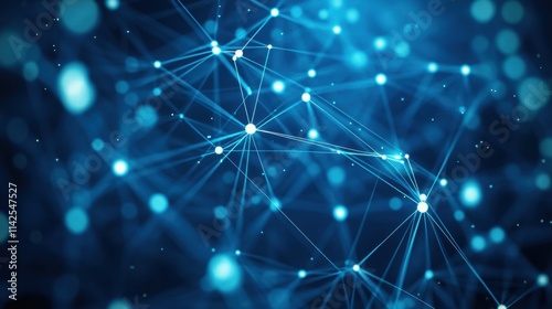 Abstract Connection Network of Bright Dots and Lines in Blue Color
