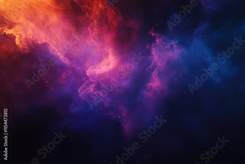 Abstract cosmic artwork depicting a nebula with vibrant red and blue hues, resembling a celestial cloud formation.