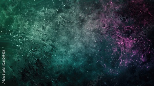 Abstract cosmic background with swirling colors of teal, purple, and black, suggesting a nebula or galaxy formation