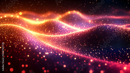 Abstract cosmic background with vibrant glowing particles and waves of light, creating a dynamic and energetic visual texture