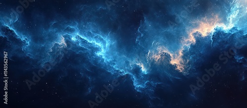Abstract cosmic cloud formation with a blue, white, and dark blue color scheme.