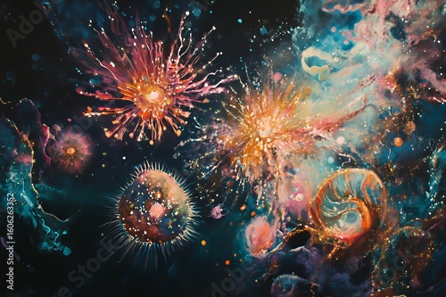 Abstract Cosmic Entities Illuminated In Vibrant Hues