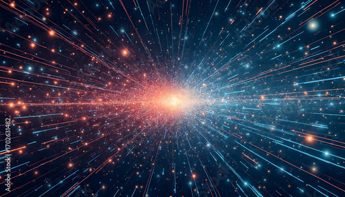 Abstract Cosmic Explosion of Light Streaks and Particles with a Bright Central Glow