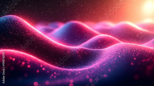 Abstract cosmic landscape with vibrant glowing particles and dynamic waves