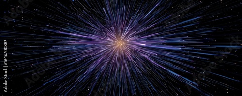 Abstract Cosmic Light Explosion Purple and Blue Streaks in Dark Space