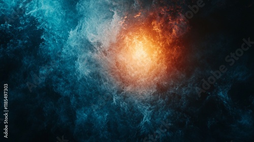 Abstract Cosmic Nebula Fiery Orange and Teal Blue Swirling Cloudscape Celestial Background