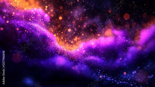 Abstract cosmic nebula, glowing particles, vibrant colors, dark background, perfect for design
