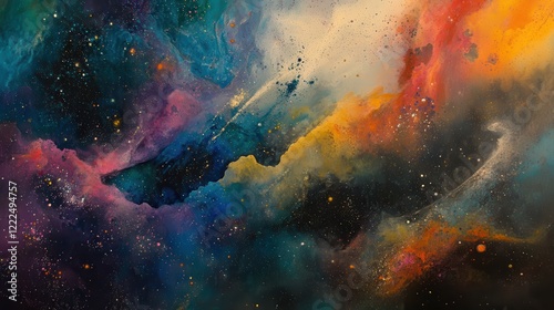 Abstract Cosmic Nebula Painting with Vibrant Colors and Starry Dust.