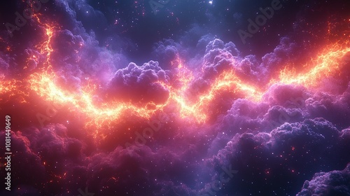 Abstract Cosmic Nebula with Fiery Tendrils and Stars
