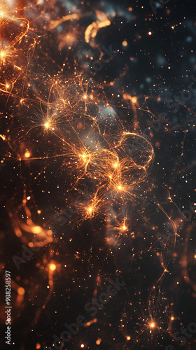abstract cosmic nebula with glowing orange stars and dust trails - digital art background