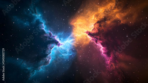 Abstract Cosmic Nebula With Glowing Stars And Colorful Gas Clouds Against Dark Black Background