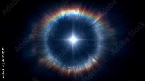 Abstract cosmic nebula with shining star and colorful halo in dark space exploration background