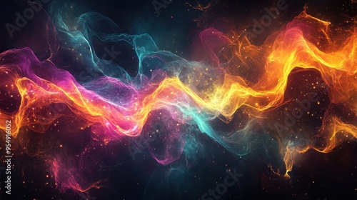 Abstract Cosmic Nebula with Vibrant Colors and Glittering Dust - Digital Art Background