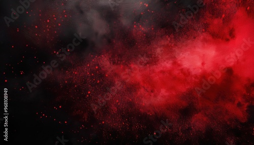 Abstract Cosmic Storm. Vibrant Red and Black Nebula Dust Clouds Swirling in the Dark Void of Space, Scattered with Glowing Particles and Hazy Texture