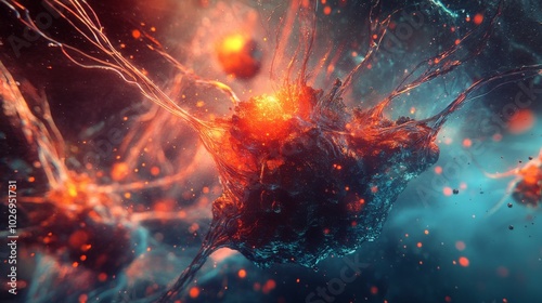 Abstract Cosmic Structure with Glowing Tendrils and Dust