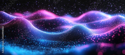 Abstract cosmic waves, vibrant pink blue, particle background, digital art