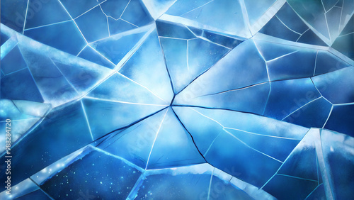 Abstract Cracked Blue Ice Texture, Fractured Glass Effect, Cool Toned Design with Copy Space