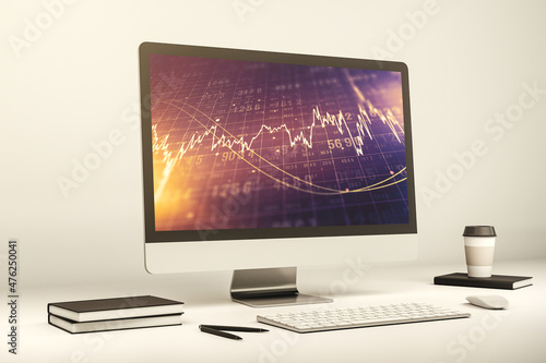 Abstract creative financial graph on modern laptop monitor, forex and investment concept. 3D Rendering