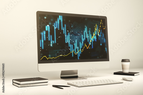 Abstract creative financial graph on modern laptop screen, forex and investment concept. 3D Rendering