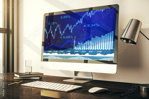 Abstract creative financial graph on modern laptop screen, forex and investment concept. 3D Rendering