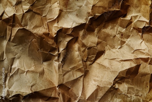 Abstract crumpled and creased recycled brown paper texture background
