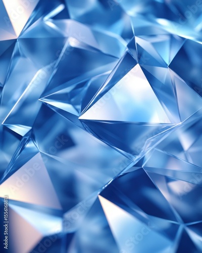 Abstract Crystal Blue Geometric Pattern Triangular Facets Soft Lighting