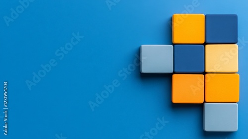 Abstract Cubic Composition: A contemporary design featuring a geometric arrangement of colorful cubes on a sleek, solid-color backdrop, reflecting a sense of structure and creativity.