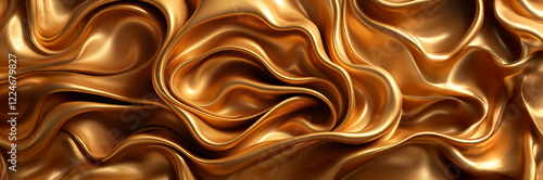 Abstract Curved Gold Shape with Lighting Effect – Luxury Design on gold Background with Copy Space