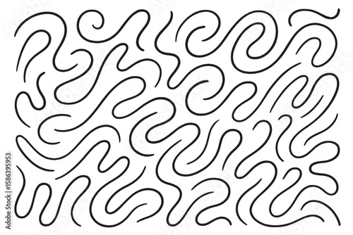 Abstract Curved Line Pattern Background. Seamless Vector Ink Outline Design. Dynamic Swirl and Wave Elements for Modern Decor, Wallpaper, Textile, Branding, and Artistic Graphic Resources
