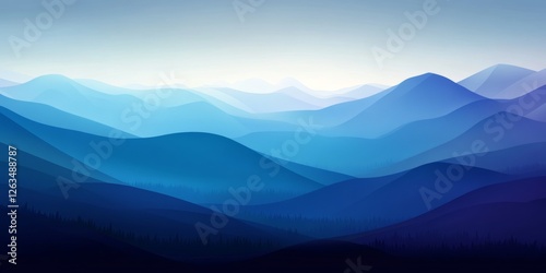Abstract Cyan and Purple Gradient Mountain Landscape, Minimalist Design, Vector Illustration