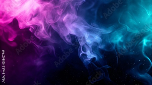 Abstract cyber mist background with blue and purple smoke. Glowing neon pink square with vibrant fog abstract background. Geometric fashion design. Empty minimal art decoration