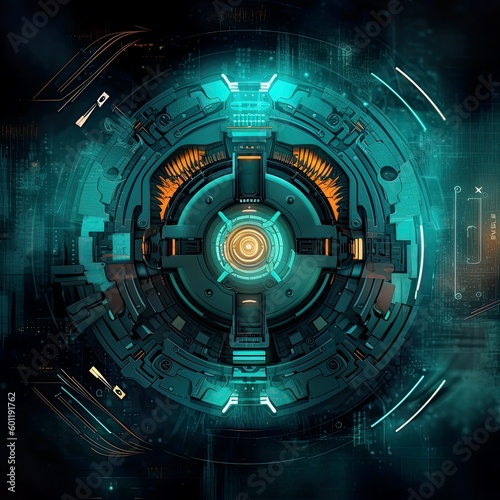 Abstract cyberpunk background with neon details. AI Generative Art.