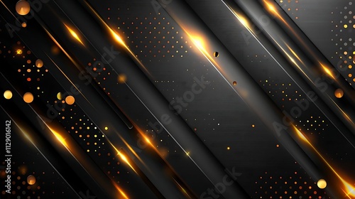 Abstract dark background with gold lines and glowing lights.