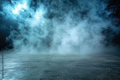 Abstract dark background with smoke and fog on a concrete floor, an empty scene for product presentation
