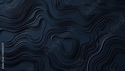 Abstract Dark Blue Background, with Wavy Lines, and 3D Effect. Dark Background. Liquid Illusion.