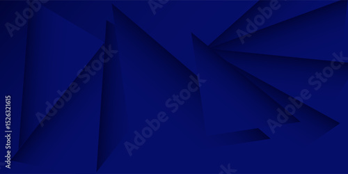 Abstract dark blue geometric background with sharp triangular shapes and smooth gradient lighting. Modern digital art ideal for technology, business, or futuristic themes.
