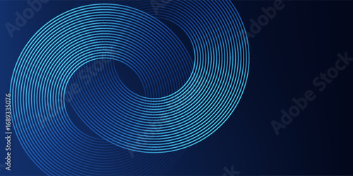 Abstract dark blue gradient background with glowing skin blue geometric circle lines design background vector illustration.