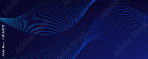Abstract dark blue minimal vector background. Long banner business template with dynamic wavy gradient line