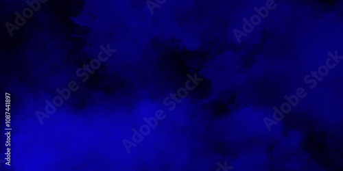 Abstract dark blue watercolor cloudiness, mist, or smog background. Dark navy blue sky with black background and blurred pattern. Vivid textured aquarelle painted art design background.