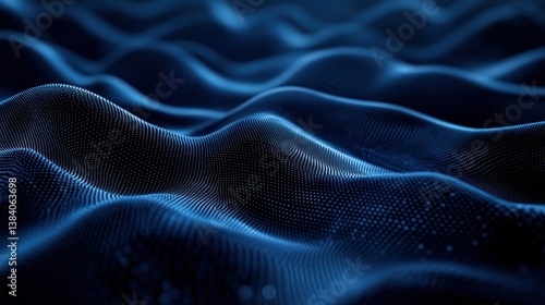 Abstract dark blue wavy digital particle background.