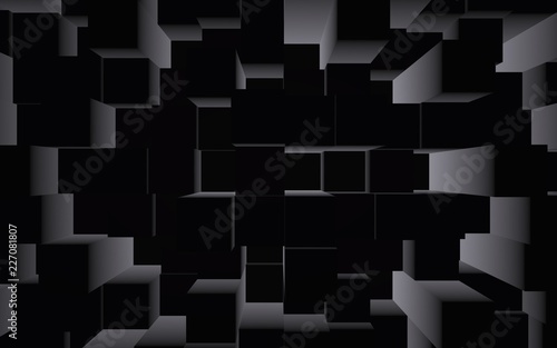 Abstract dark elegant cube geometric background. Chaotically advanced rectangular bars. 3D Rendering, 3D illustration