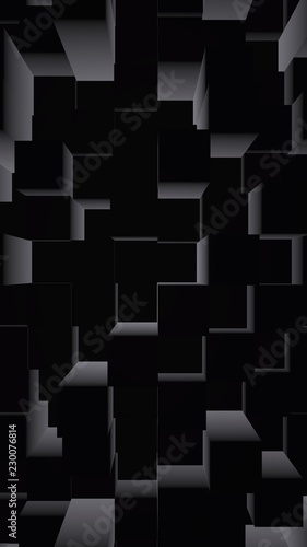 Abstract dark elegant cube geometric background. Chaotically advanced rectangular bars. 3D Rendering, 3D illustration