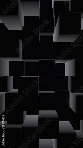 Abstract dark elegant cube geometric background. Chaotically advanced rectangular bars. 3D Rendering, 3D illustration
